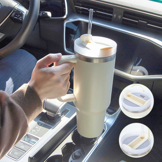 Christmas Pattern Stainless Steel Tumbler for Cold & Hot Beverages With Handle Lid Straw